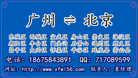 ????? 【廣州到北京物流專線服務(wù)細節(jié)】鑫富物流提供廣州到北京物流專線運輸、包車運輸,承運家具、電器、衛(wèi)浴具、家庭用品、行李包裹搬家托運。可從廣州越秀區(qū)、海珠區(qū)、荔灣區(qū)、天河區(qū)、白云區(qū)、黃埔區(qū)、番禺區(qū)搬家到北京東城區(qū)、西城區(qū)、朝陽區(qū)、海淀區(qū)、豐臺區(qū)、石景山區(qū)、門頭溝區(qū)、房山區(qū)、大興區(qū)、通州區(qū)、順義區(qū)、昌平區(qū)、平谷區(qū)、懷柔區(qū)、密云縣、延慶縣。
