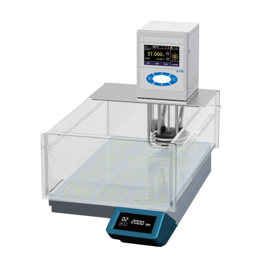 將帶有磁子的樣品(液體)放入恒溫循環浴槽中,通過浴槽底部多個磁力攪拌工位對樣品進行充分的攪拌和混勻,可完成對樣品在某個特定溫度下的相關合成反應,廣泛應用于石油,化工,化學,生物和醫藥等行業。
