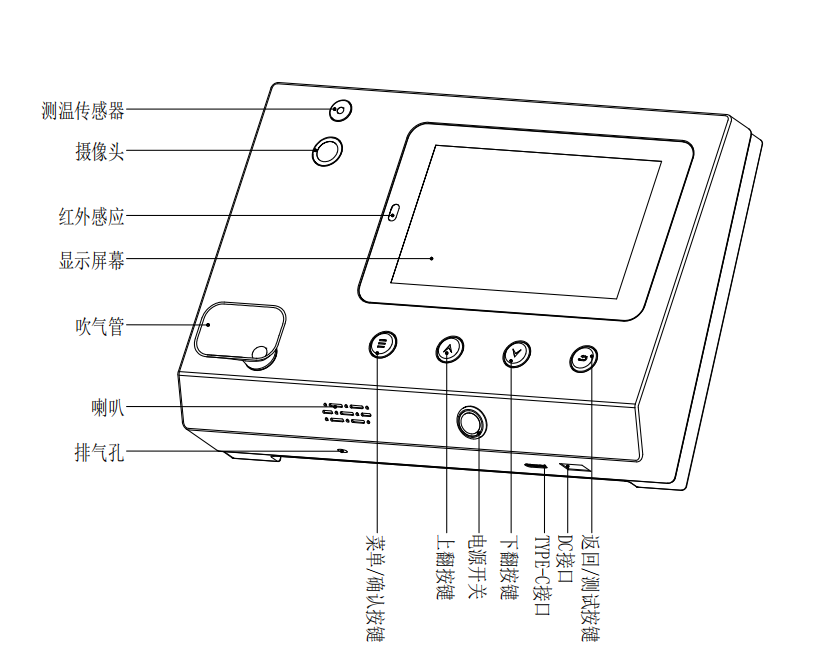 4個功能按鍵:菜單/確認、上翻、下翻、返回/測試