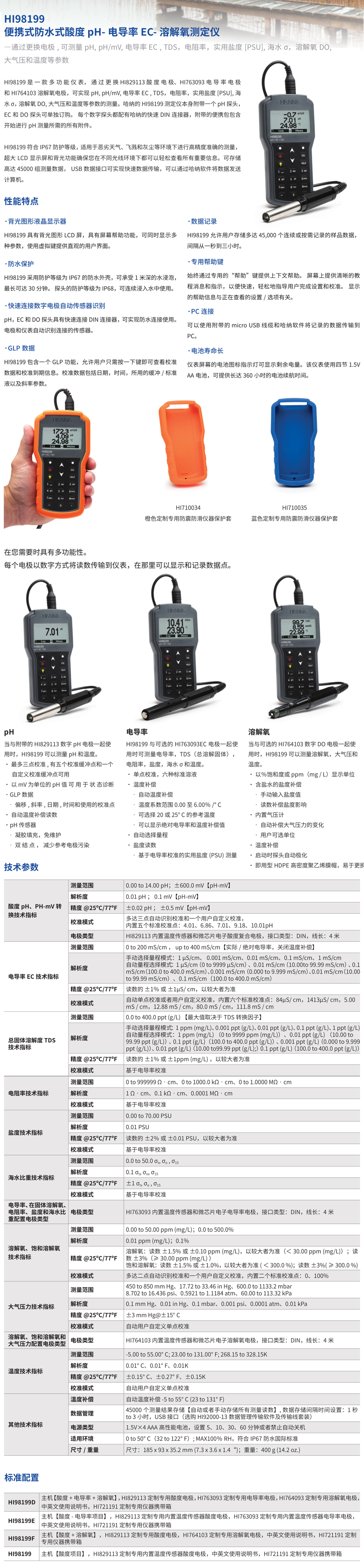 產品名稱:哈納 HI98199 多參數水質測定儀