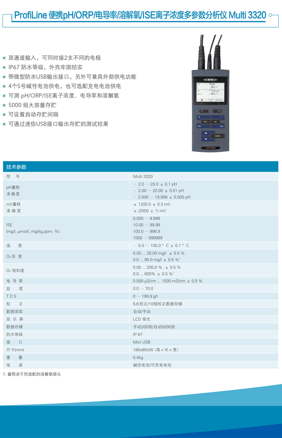 德國WTW Multi 3320便攜式PH計/電導(dǎo)率儀/溶解氧多參數(shù)測量儀簡介
