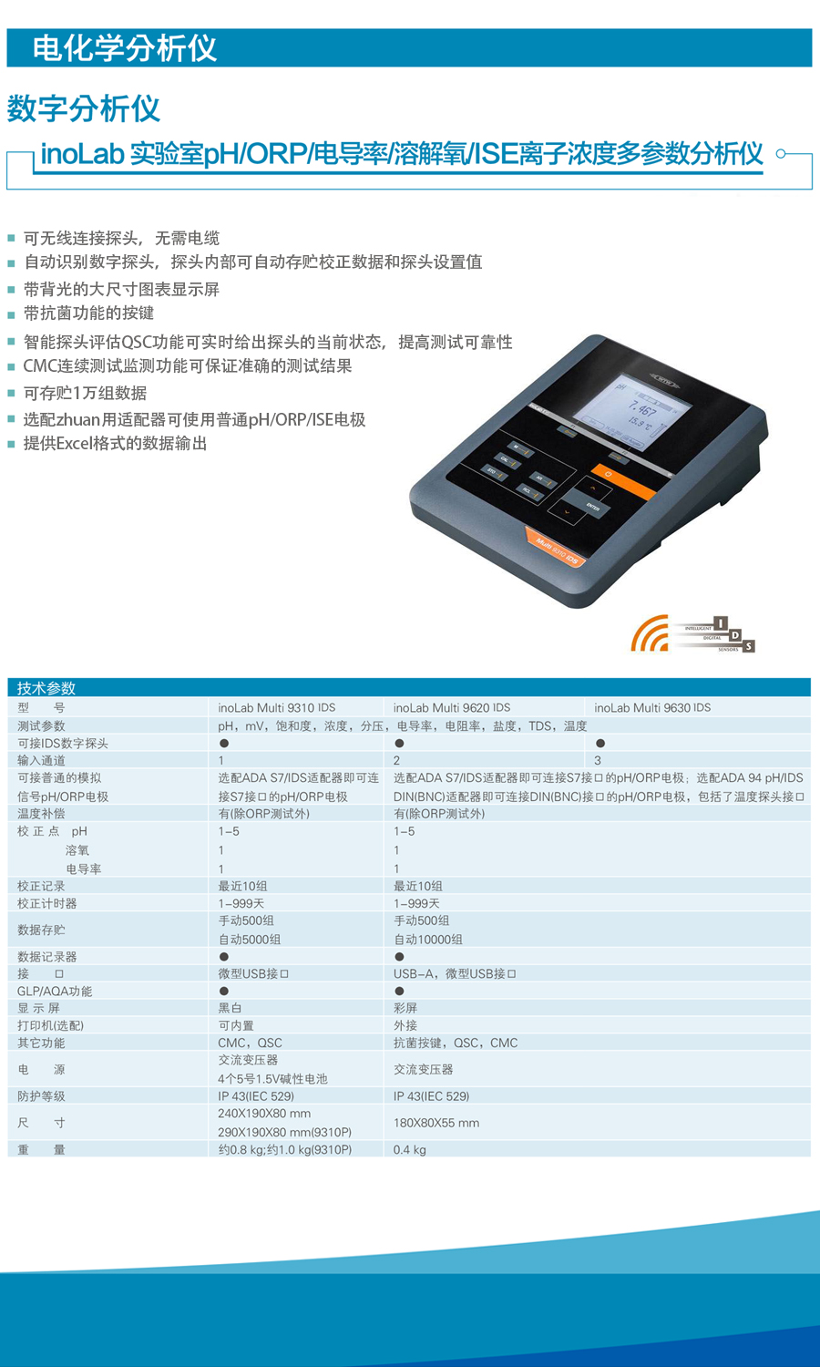 德國WTW Multi 9310/9620/9630 IDS臺式PH計電導率儀溶解氧儀多參數水質分析儀簡介
