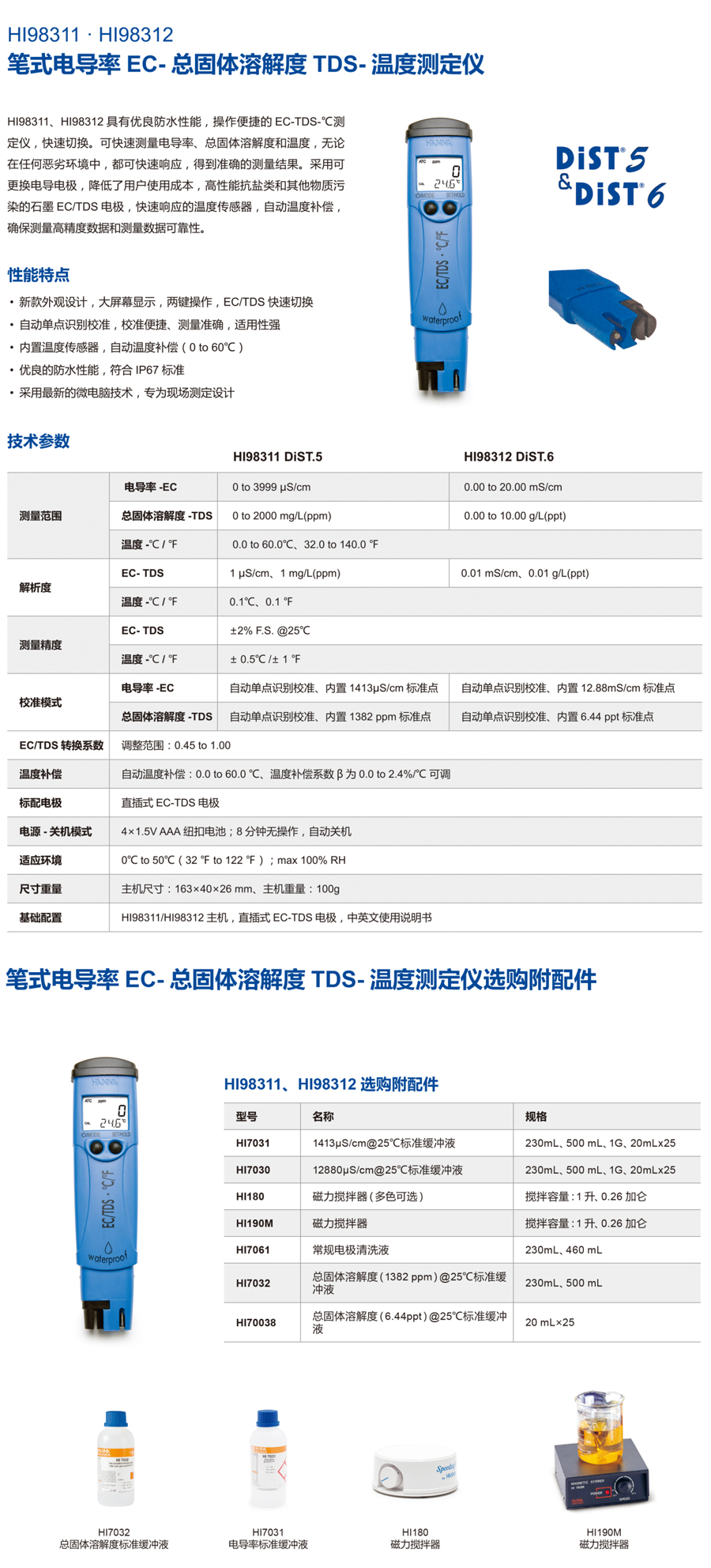 哈納 HI98312 高量程EC-TDS-℃測(cè)定儀