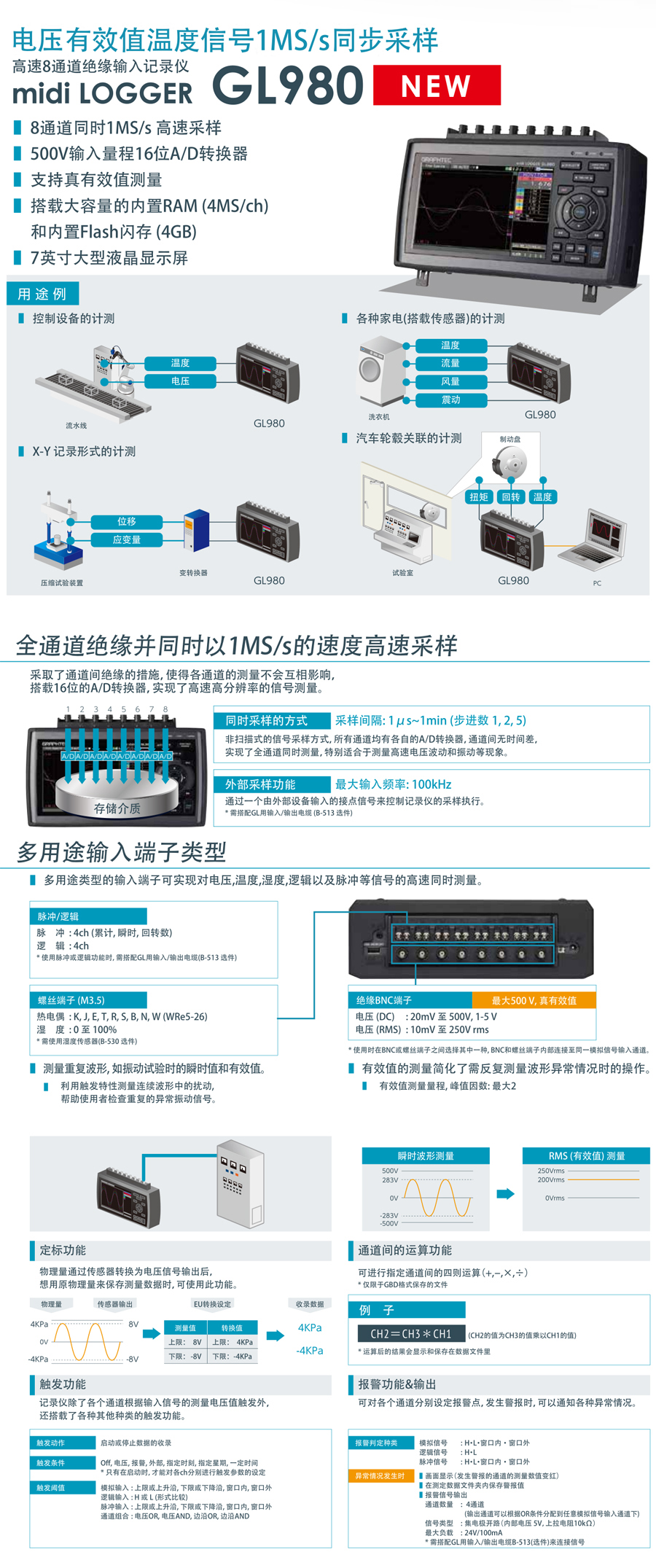 產品名稱:日本圖技 GL980系列數據記錄儀