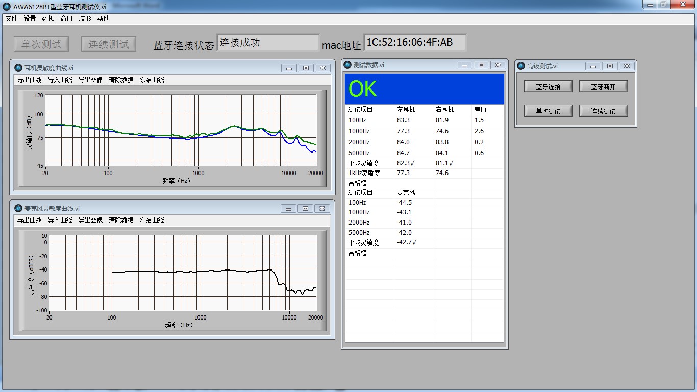 分進行頻響、諧波失真和異常音等參數測試。連接方式有一拖一和一拖二,支持