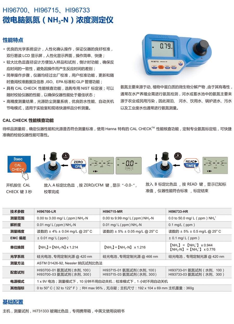 產品名稱:哈納 HI96733 氨氮【HR】防水光度計