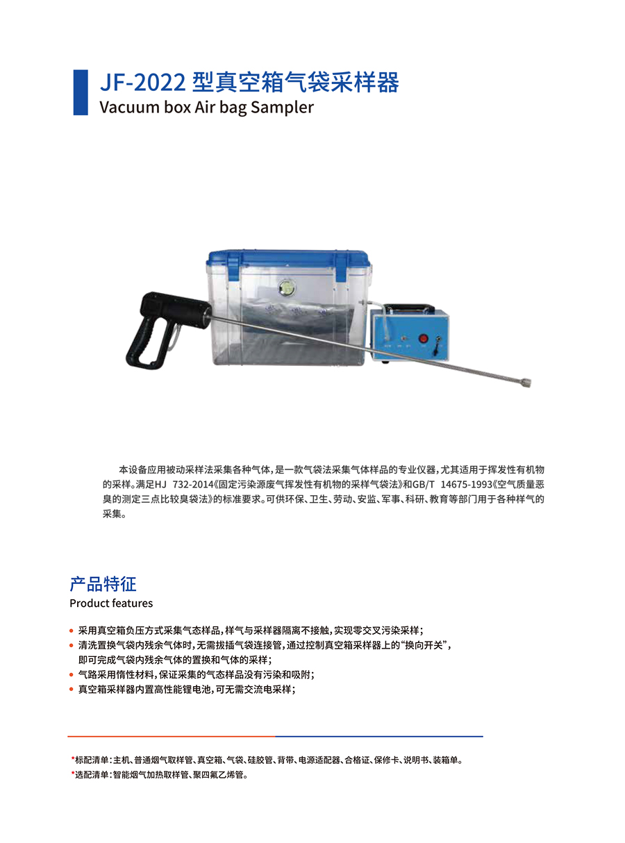 產品名稱:JF-2022型真空箱氣袋采樣器