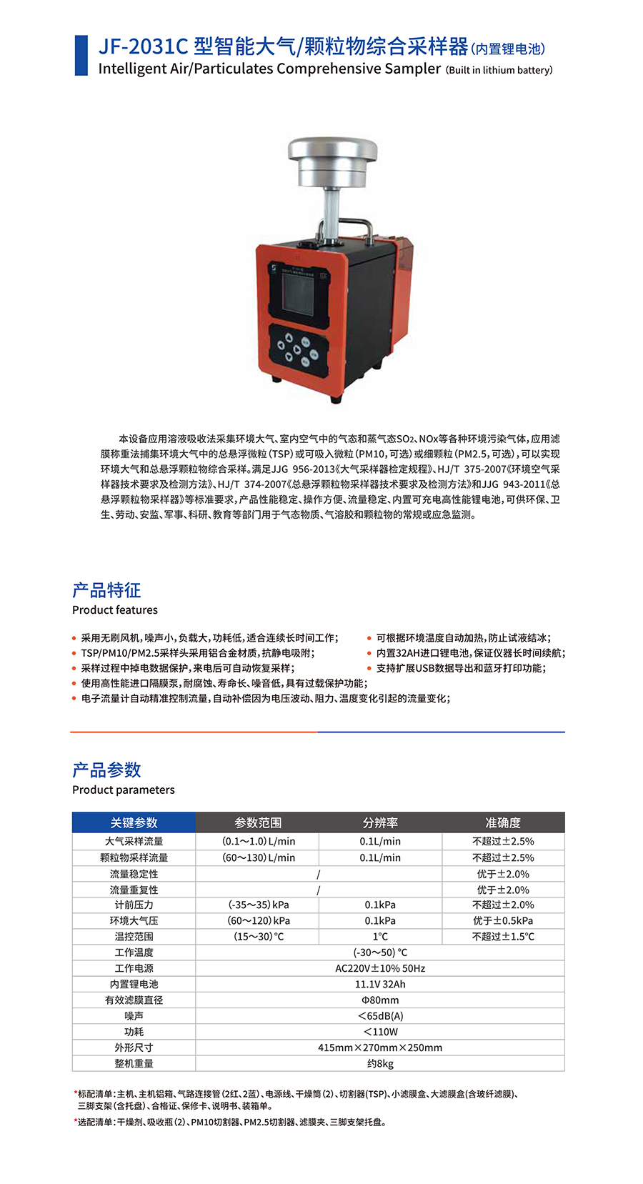 產品名稱:JF-2031C型智能大氣/顆粒物綜合采樣器(內置鋰電池)