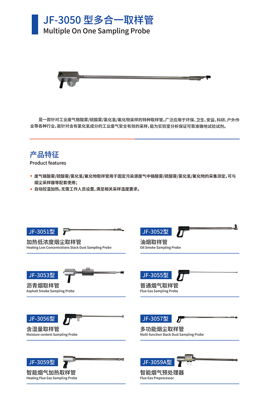 產品描述:是一-款針對工業廢氣鉻酸霧/硫酸霧/氯化氫/氟化物采樣的特種取樣管。廣泛應用于環保、衛生、安監、科研、戶外作業等各種行業,能針對含有氯化氫成分的工業廢o氣安全有效的采樣,能為實驗室分析保證可靠準確地試驗試劑......